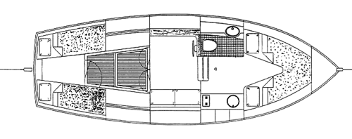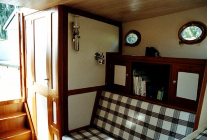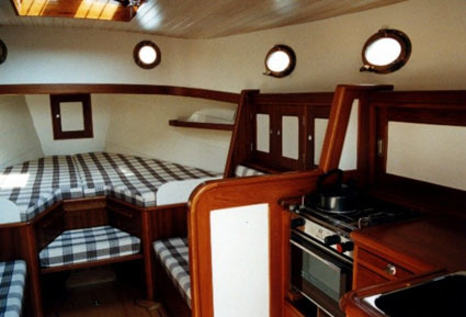 Aansluitend aan de ruime open kuip stap je in de stuurhut. Hier bevindt zich een stuurconsole en een zitbank. In de roef is ruimte voor een keuken, een toilet en twee ruime zit/slaapbanken met een tafel. Eventueel kan nog een zg. hondenkooi gemaakt worden door gebruik te maken van de ruimte in de stuurhut en de stuurboord bank van de kuip.