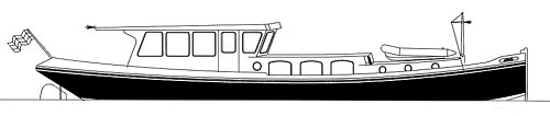 Dit ontwerp heeft een meer traditioneel stuurhuis, en een achterwoning. Verder is de open kuip op het voordek uitgevoerd, naar wens kan hier ook een ingang vanuit de middenroef gemaakt worden.