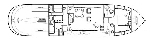 De hier getoonde indeling is een voorzet en kan aangepast worden, maak Uw eigen indeling en schrijf Uw eigen technische uitvoering en Uw schip wordt op maat uitgevoerd, wij kunnen dit dan als platenpakket of als casco leveren.
