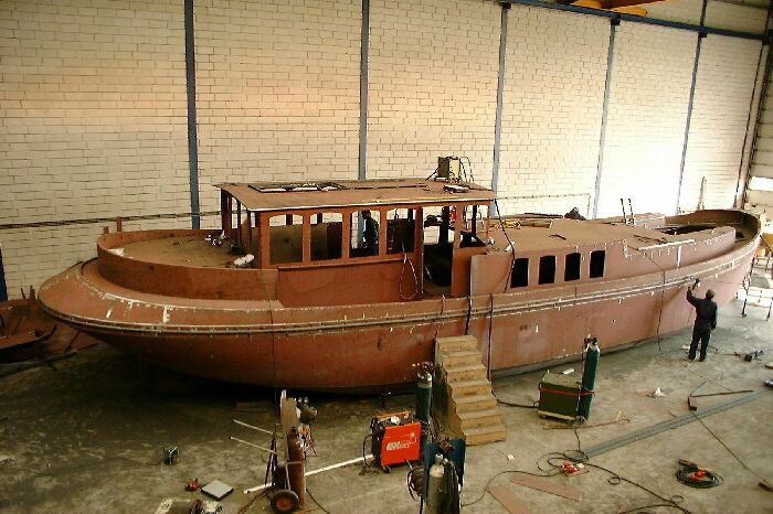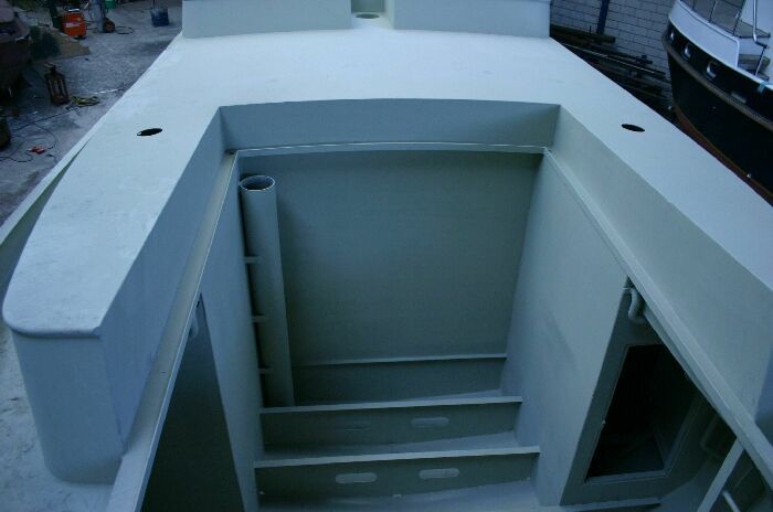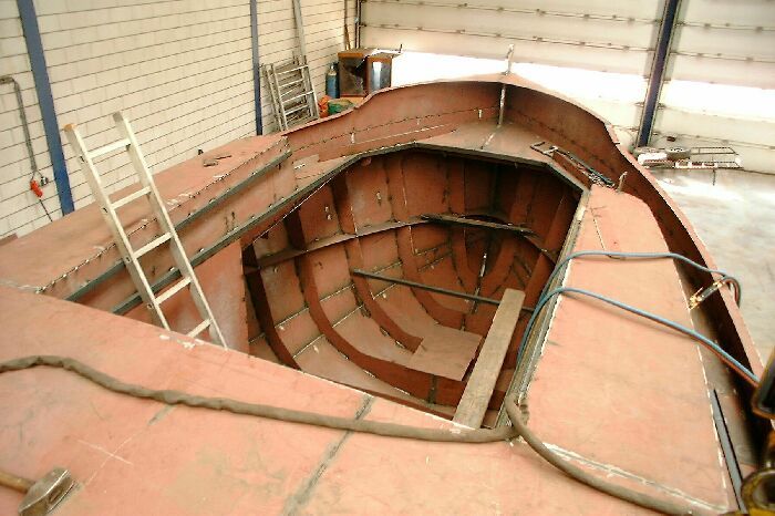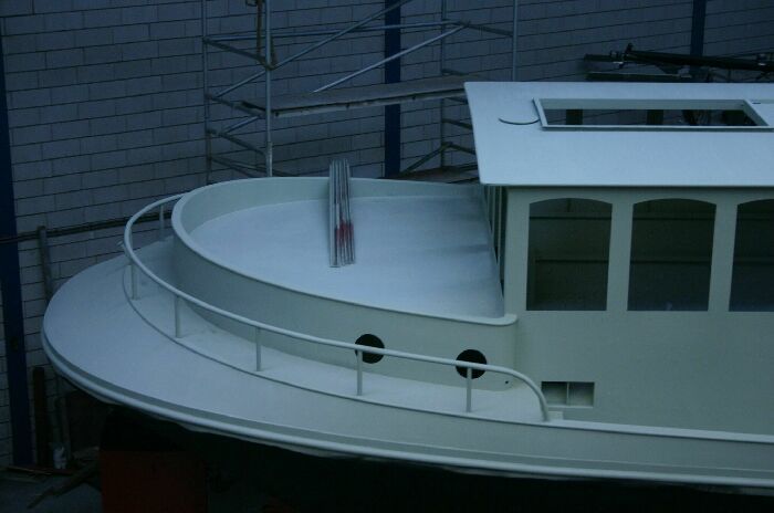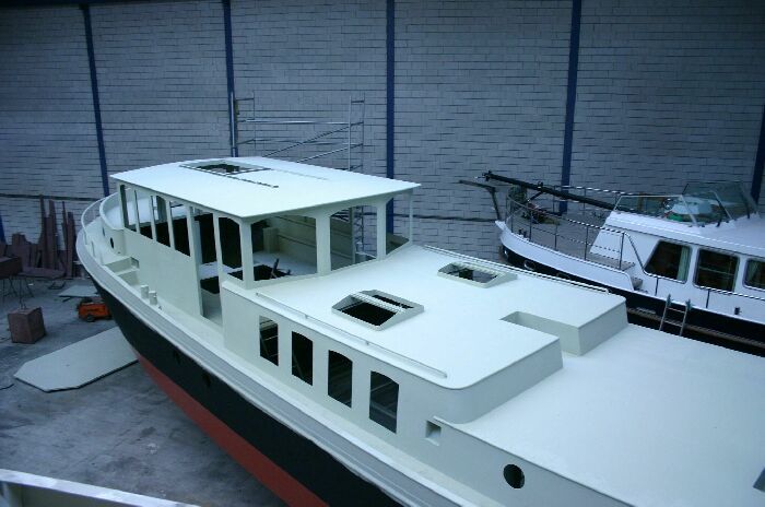 Er is veel leefruimte, ruime achterkajuit, ruime stuurhut en veel ruimte in de midroef. Let op het dek boven de achterkajuit, dit dek is langsscheeps vlak gemaakt zodat er een tafel en stoelen op kan staan. De zeeg van de achterkajuit loopt gewoon door dus dit vlakke dek doet geen afbreuk aan de traditionele lijnen.