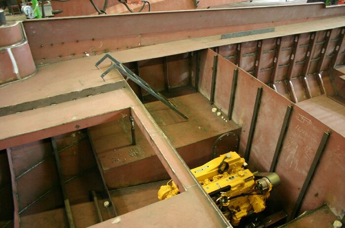 Gangboord ter plaatse van de schuifdeur in het stuurhuis is dezelfde hoogte als de vloer binnen. De motor bevind zich onder het achterste deel van het stuurhuis.
