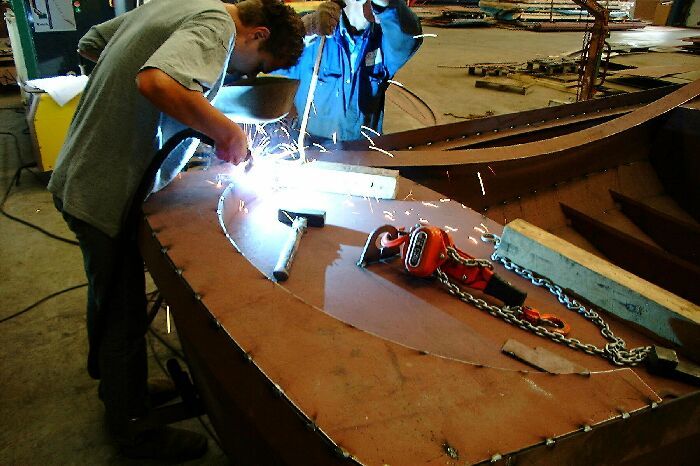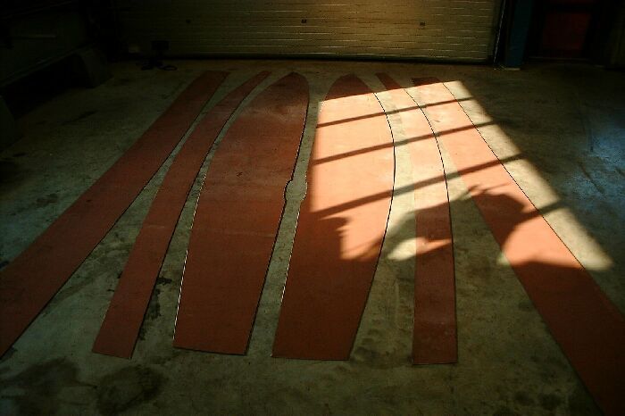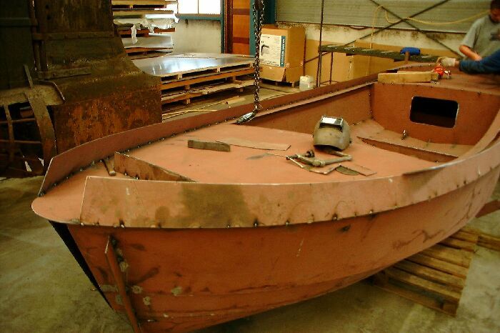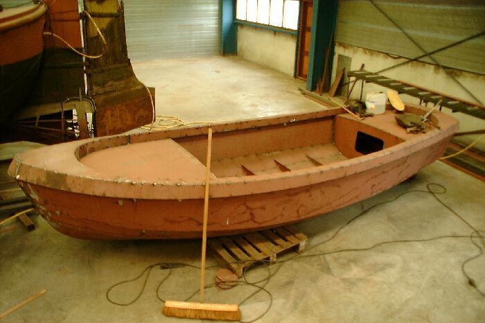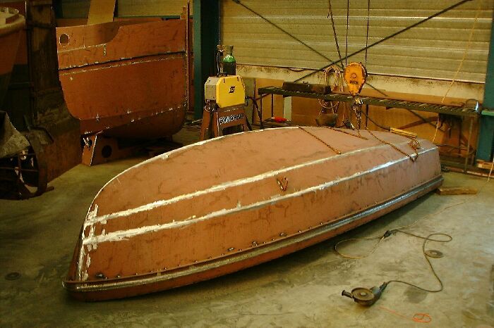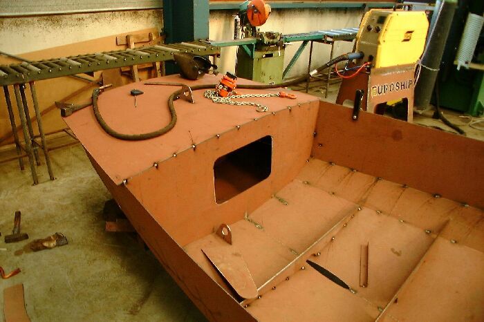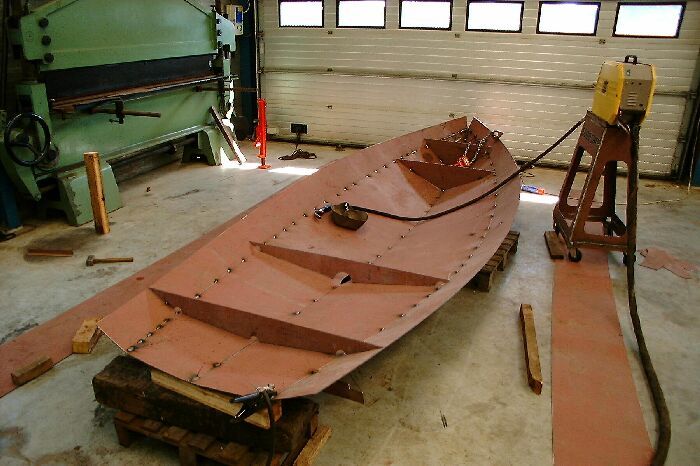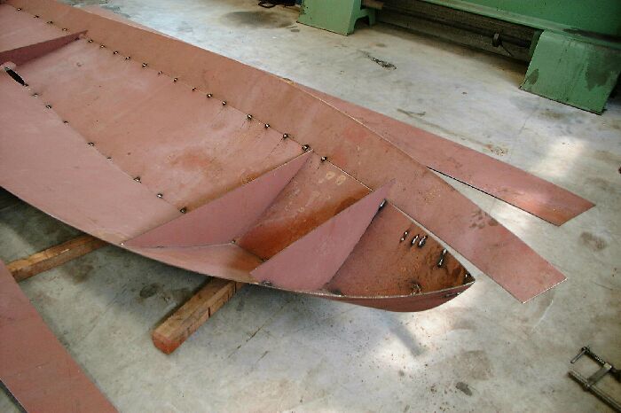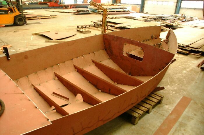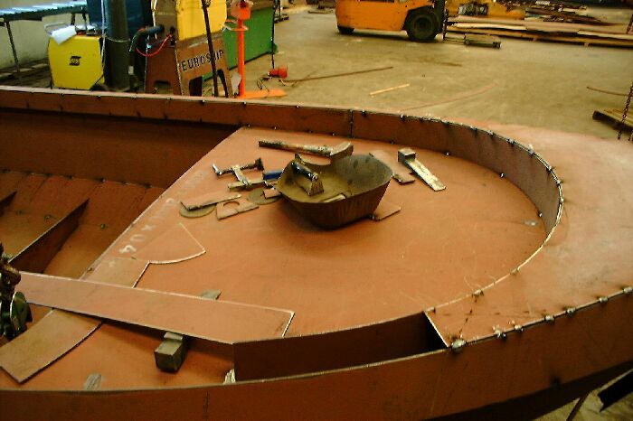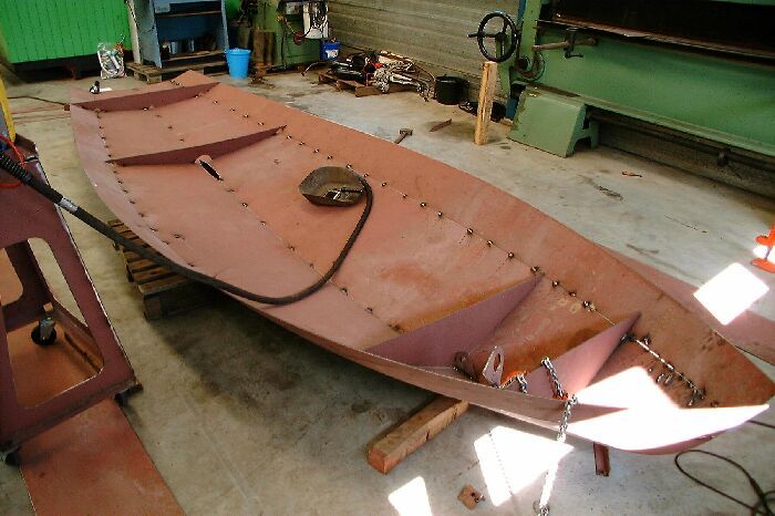Het schip is gebouwd uit drie huidgangen die op eenvoudige wijze in elkaar gezet kunnen worden, het zijn zogenaamde afwikkelbare vormen zodat geen tijdrovend en kostbaar vormwerk meer nodig is.